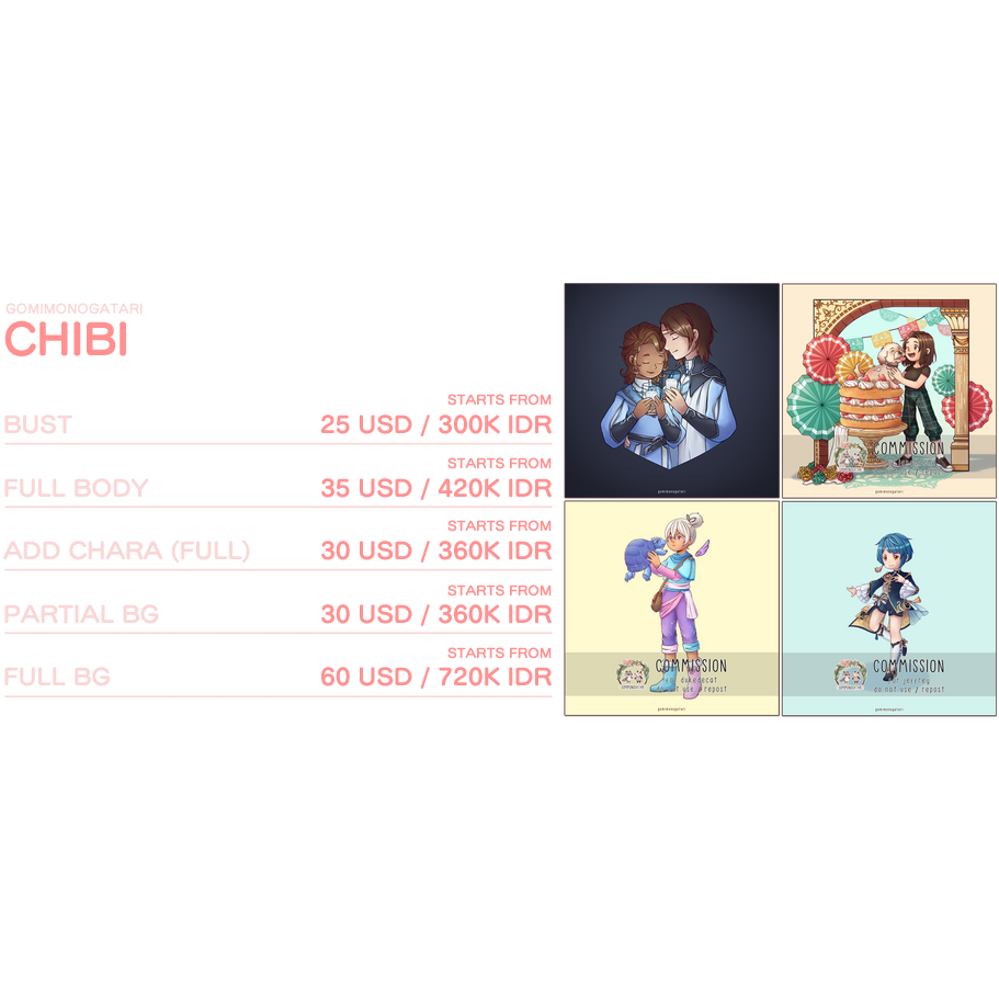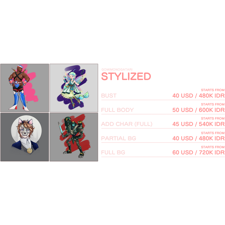 Payment must be made before indicated deadline stated in the invoice. By any chance the client decided to continue with the commission after the deadline, we will issue a new invoice with the latest pricing